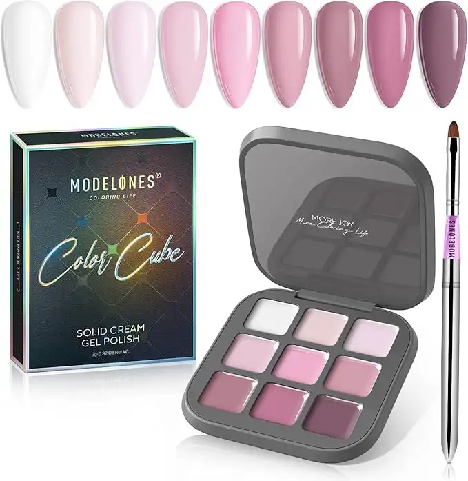 Modelones Gel Nail Polish Set, 9 Colors Neutral Nude Pink Solid Gel Polish White Pudding Gel Soak Off LED Nail Art Kit Salon DIY Home Mother's Day Gift, with Pro Nail Art Brush