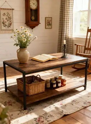 Modern Two Tier Coffee Table for Living Room, Easy Assembly, 80cm L x 50.8cm W x 42.5cm H, Walnut Color
