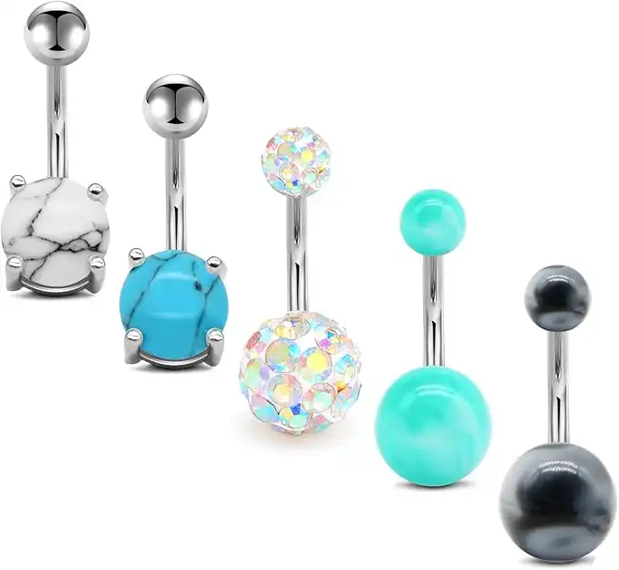 MODRSA Belly Button Rings 14G Surgical Stainless Steel Navel Barbell Pack for Women Girls Piercing Rings Jewelry Belly Bar 3/8" 10mm, Metal — Price History & Tracker | DeserTracker