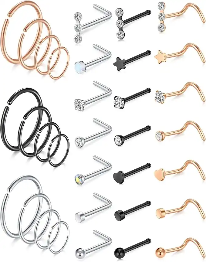 amazon.aeMODRSA Nose Rings for Women Men Nose Piercing Jewelry 20g Nose Ring Hoop Silver Rose Gold Nose Hoop Surgical Stainless Steel Hypoallergenic Diamond Nose Studs L Shape Nose Screw Heart Nostril Jewelry