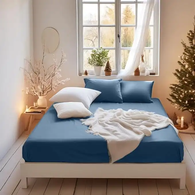 MOHAP 16 inch (40cm) Extra Deep King Size Fitted Sheet Only Bedsheet No Pillowcases Non-Iron Brushed Microfiber Breathable No Colour Fade Denim Blue — Price History & Tracker | DeserTracker
