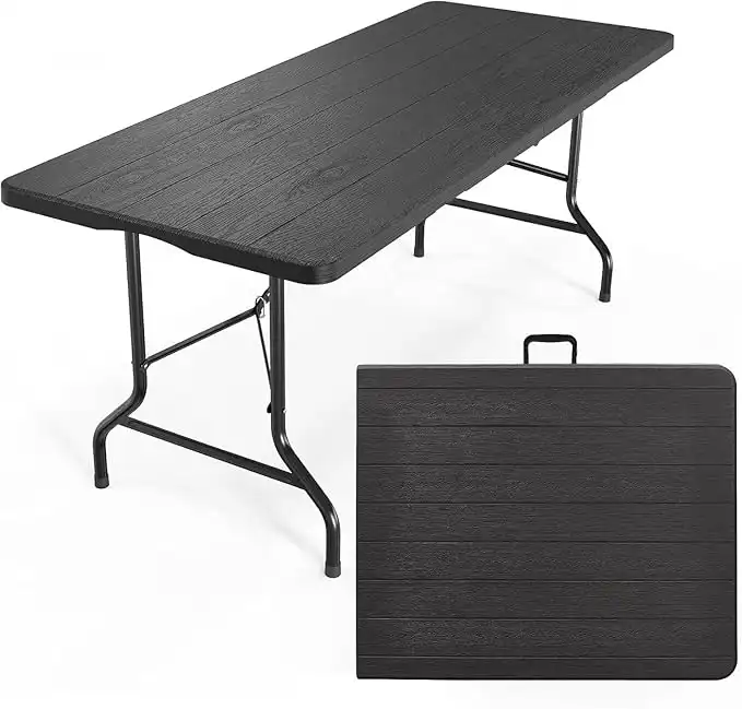 amazon.comMOMENT 1.8m Folding Lightweight Trestle Outdoor Camping Table, Heavy Duty Plastic Outdoor Picnic Table, Folds in Half with Carry Handle, Black (180×75×75cm)