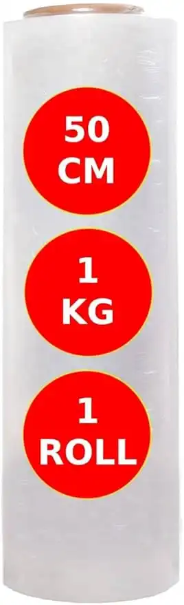 MOMENT [1 Roll] 1KG Clear Stretch Film Wrap - 500mm Heavy Duty Plastic Shrink Wrap for Pallet Wrap, Packing, Moving and Packaging - Cling wrap, 1 kg, 300g core
