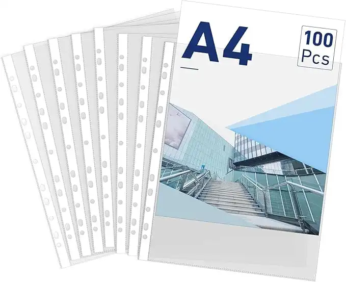 amazon.comMOMENT A4 Transparent file, 100 Pcs Clear Plastic Folder Punched Pockets for Filing Paper & Documents, A4-Size,Transparent File Protector Best Folder Plastic For Office or School work