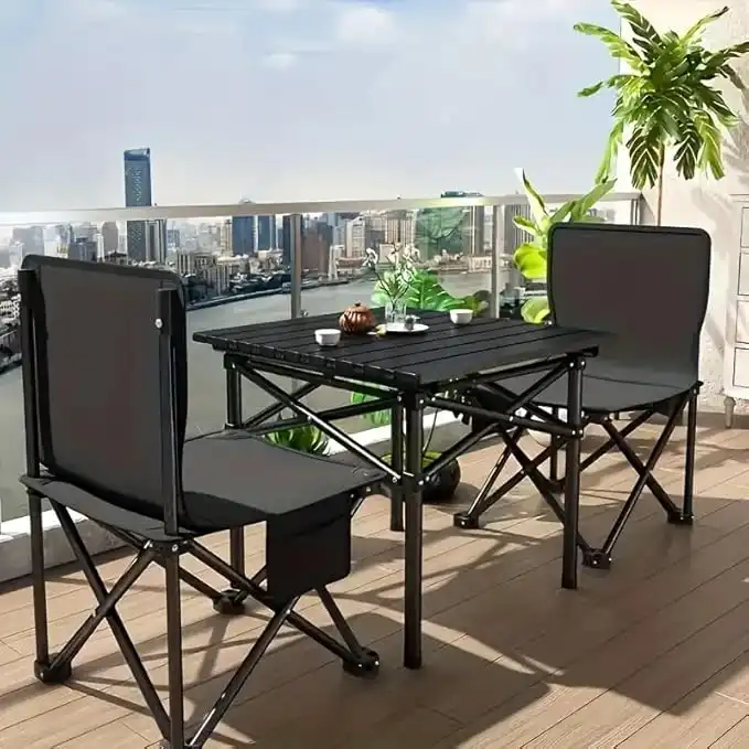 MOMENT Camping Table and Chairs, Folding Picnic Table and Chairs 2, Roll-Up Foldable Table Set and Carrying Bag for Indoor Outdoor BBQ Party Fishing Beach, 53cm (L) X 50cm(W)