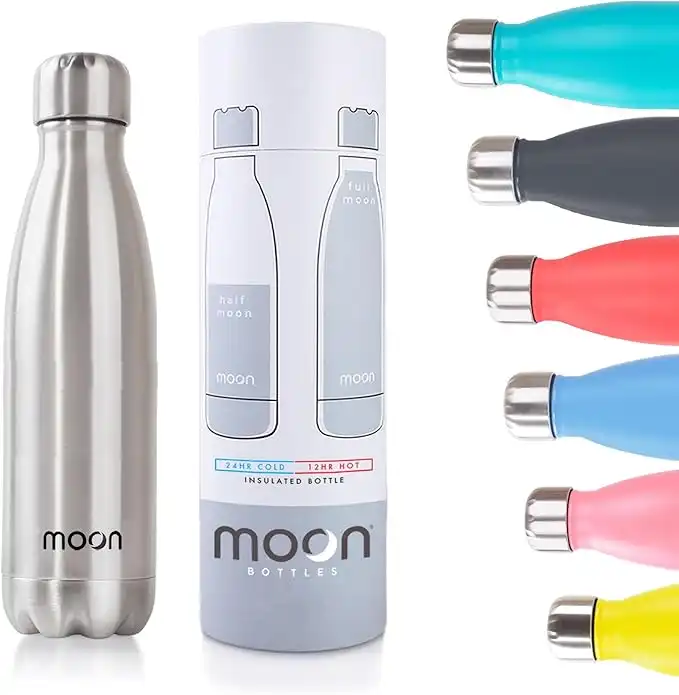amazon.aeMoon Bottles - Carbon Neutral Stainless Steel Metal Water Bottle & Vacuum Flask - 24 Hrs Cold & 12 Hot - Insulated Drink Bottle, Double Walled Reusable Thermal Flasks, Leakproof (750ml, Silver)