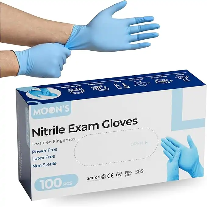 Moon's Nitrile Exam Gloves, 5mil, Blue, Latex-Free Powder-Free Non-Sterile,Best for Kitchen and Cleaning, Cooking, Food Prep, Restaurant, Saloon, Disposable Glove (100pcs x 1 Pack, Large)