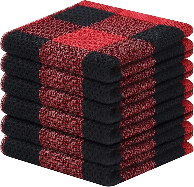 Mordimy 100% Cotton Waffle Weave Buffalo Plaid Dish Cloths, 6-Pack Super Soft and Absorbent Dish Towels, Quick Drying Dish Rags, 12 x 12 Inches, Black & Red — Price History & Tracker | DeserTracker
