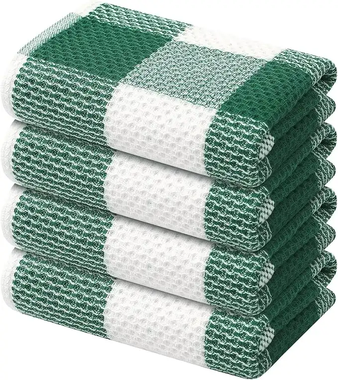 Mordimy 100% Cotton Waffle Weave Kitchen Towels, 13 x 28 Inches, Super Soft and Absorbent Buffalo Check Dish Towels for Drying Dishes, 4-Pack, White & Dark Green — Price History & Tracker | DeserTracker