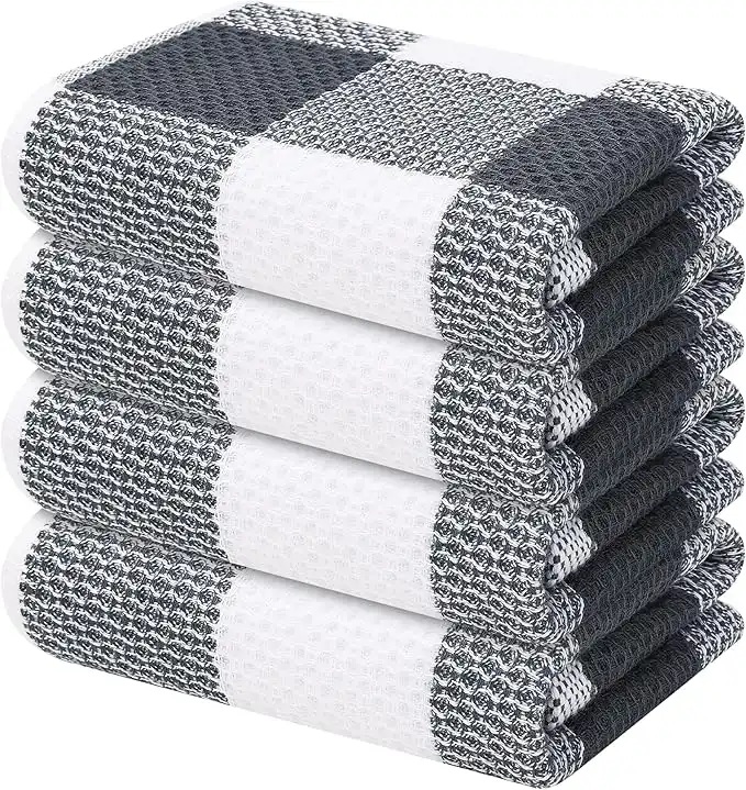 Mordimy 100% Cotton Waffle Weave Kitchen Towels, 13 x 28 Inches, Super Soft and Absorbent Buffalo Check Dish Towels for Drying Dishes, 4-Pack, White & Dark Grey — Price History & Tracker | DeserTracker
