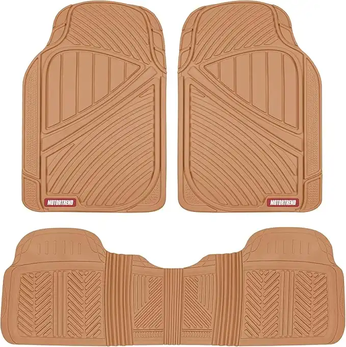Motor Trend FlexTough Performance All Weather Rubber Car Floor Mats - 3 Piece Floor Mats Automotive Liners for Cars Truck SUV, Heavy-Duty Waterproof (Beige)