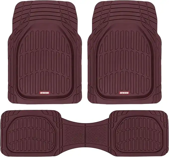Motor Trend MT923 Premium FlexTough Floor Mats All-Protection-DeepDish Front & Rear Combo Set – w/Traction Grips for Car Auto Sedans SUVs Trucks (Burgundy)