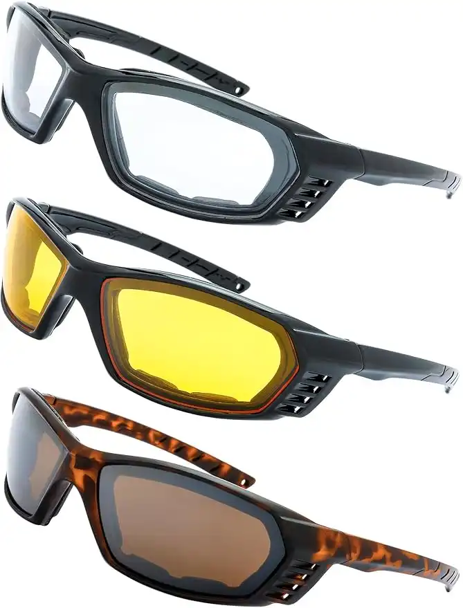 Motorcycle Riding Glasses Padded Frame Lens Block 100% UVB/UVB for Outdoor Activity Sport