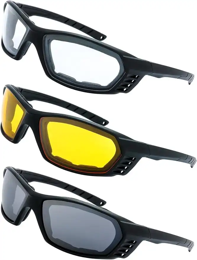 Motorcycle Riding Glasses Padded Frame Lens Block 100% UVB/UVB for Outdoor Activity Sport