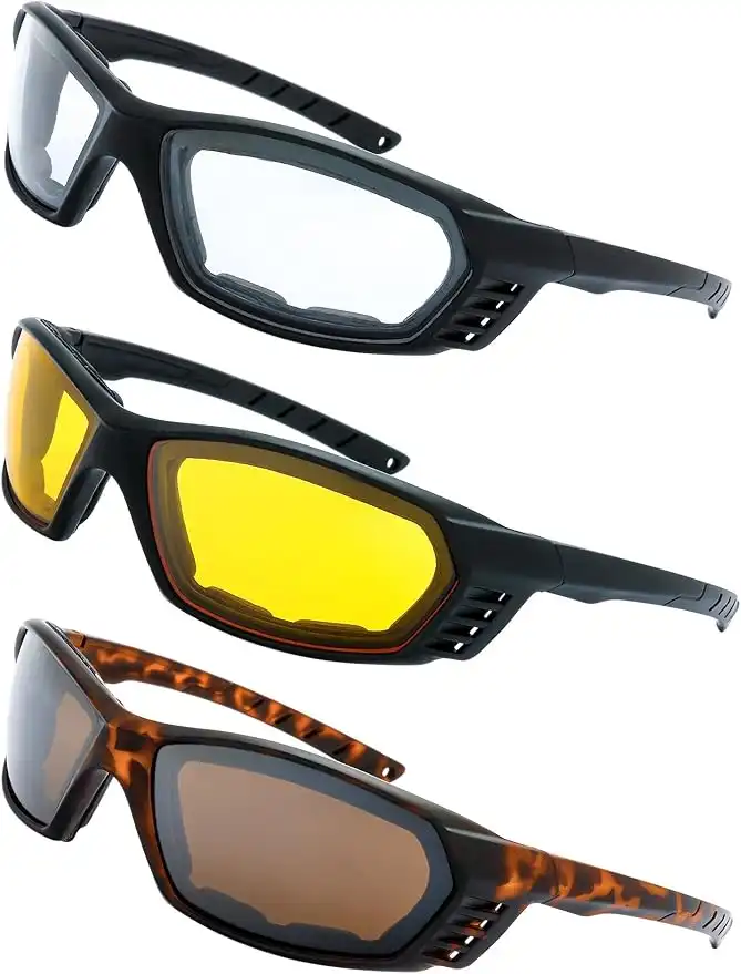 Motorcycle Riding Glasses Padded Frame Lens Block 100% UVB/UVB for Outdoor Activity Sport