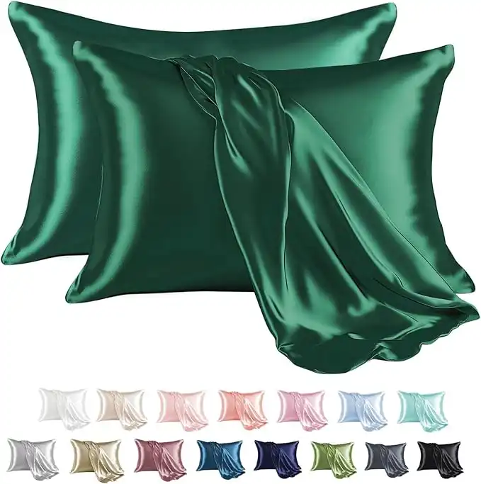 amazon.aeMR&HM Satin Pillowcase Set of 2, Queen Size Silky Pillow Cases for Hair and Skin No Zipper, 2 - Pack Pillow Cover with Envelope Closure (20x30, Dark Green)