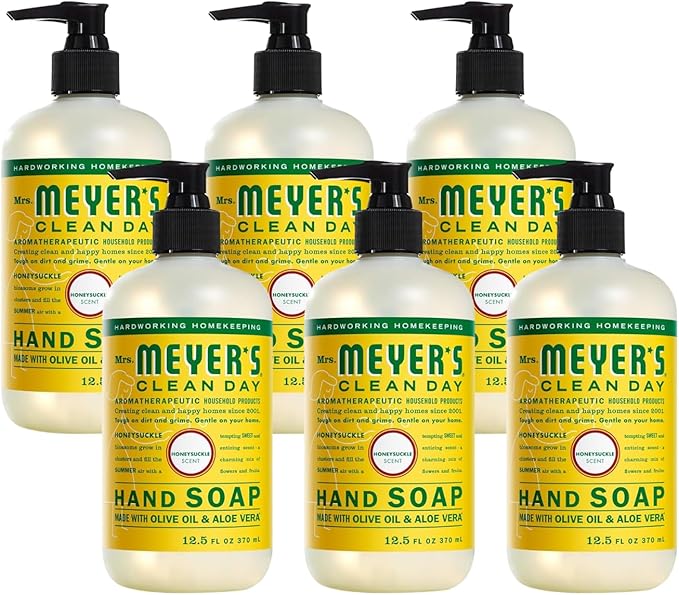 Mrs. Meyer's Hand Soap, Made with Essential Oils, Biodegradable Formula, Honeysuckle, 12.5 fl. oz - Pack of 6