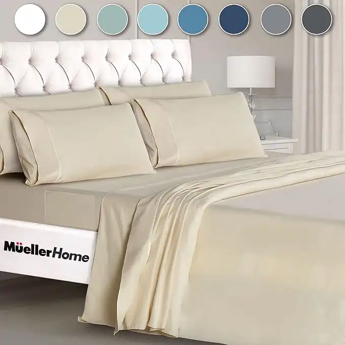 Mueller Luxury 6 Piece Queen Bedsheet Set - Ultra-Soft 1800 Series, Cooling & Breathable Hotel Quality Bedding, Deep Pocket up to 16'' - Hypoallergenic, Wrinkle-Resistant, Oeko-TEX, Cream — Price History & Tracker | DeserTracker