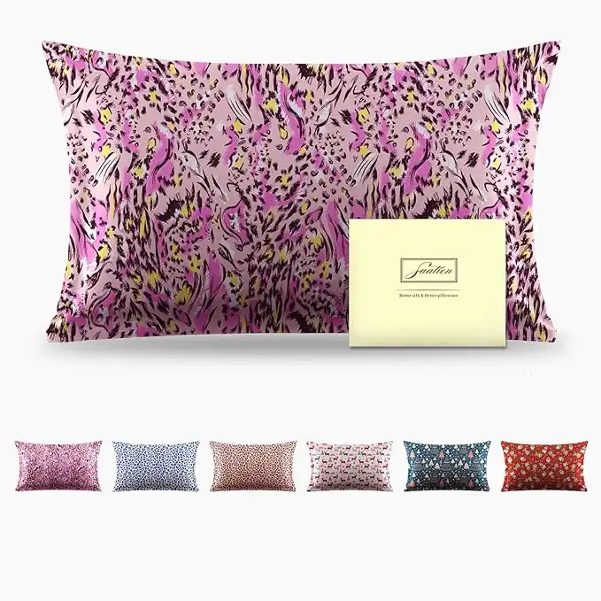 Mulberry Silk Pillow Covers with Zipper Closure, Standard Size Soft Breathable Smooth Cooling for Sleep Hair and Skin (Leopard Print/Pink Painting, 50x66 — Price History & Tracker | DeserTracker
