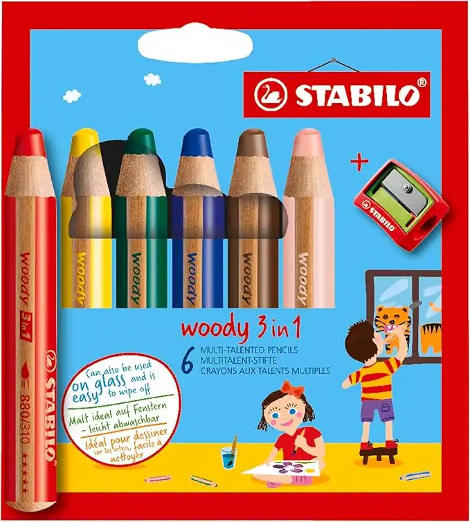 Multi-talented Pencil STABILO woody 3-in-1 wallet of 6 assorted colours + sharpener — Price History & Tracker | DeserTracker
