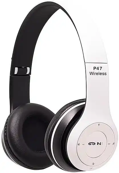 Multifunction and Foldable P47 Wireless over ear Headphones (White)