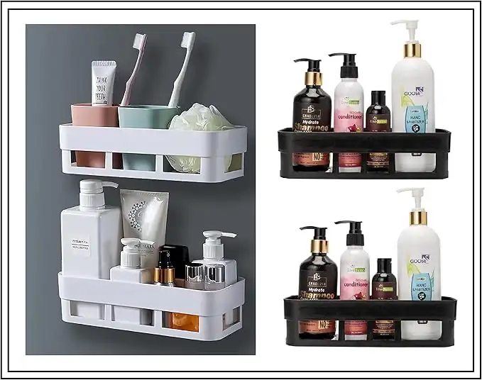 Multipurpose Wall Mount Bathroom Shelf and Rack for Home and Kitchen. Adhesive Sticker Support Without Drilling. (2 White Bathroom Shelf + 2 Black Bathroom Shelf) — Price History & Tracker | DeserTracker