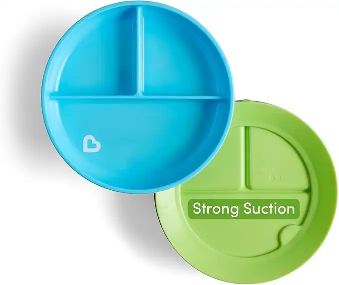 amazon.aeMunchkin Stay Put Suction Plates, suction base, spill control, divider plate, colorful, easy to use, safe, deep for little hands, Infant/Baby/Toddler/Kids, color blue/green, Pack of 2