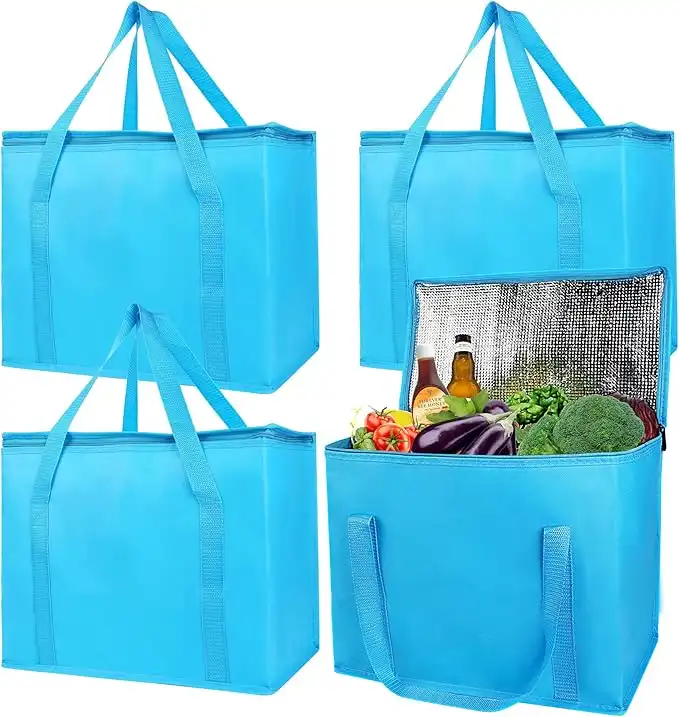 musbus 4-Pack, Large Insulated Grocery shopping bag, Blue, reusable bags,zipper,Collapsible,tote,cooler,for men women,for instacart,leakproof,soft,Recycled Material