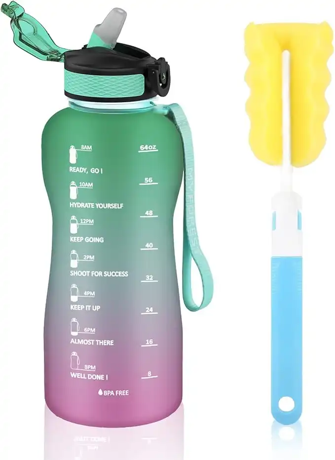 amazon.aeMYFOREST 2.2 Litre/74oz Large Water Bottle, Time Marker for Motivational Hydration, Drop-proof, BPA-free, Flip Top Nozzle/Straw/Carry-Strap/Wide-Mouth for Easy Clean: Cold/Hot/Carbonated/Cider