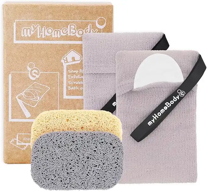 myHomeBody Soap Pocket Exfoliating Soap Saver Pouch | Body Scrubber Sponge, Exfoliator for Bath or Shower | for Large Bar Soap or Leftover Bits | White Smoke, 2 Pack + 2 Soap Lifting Pads — Price History & Tracker | DeserTracker