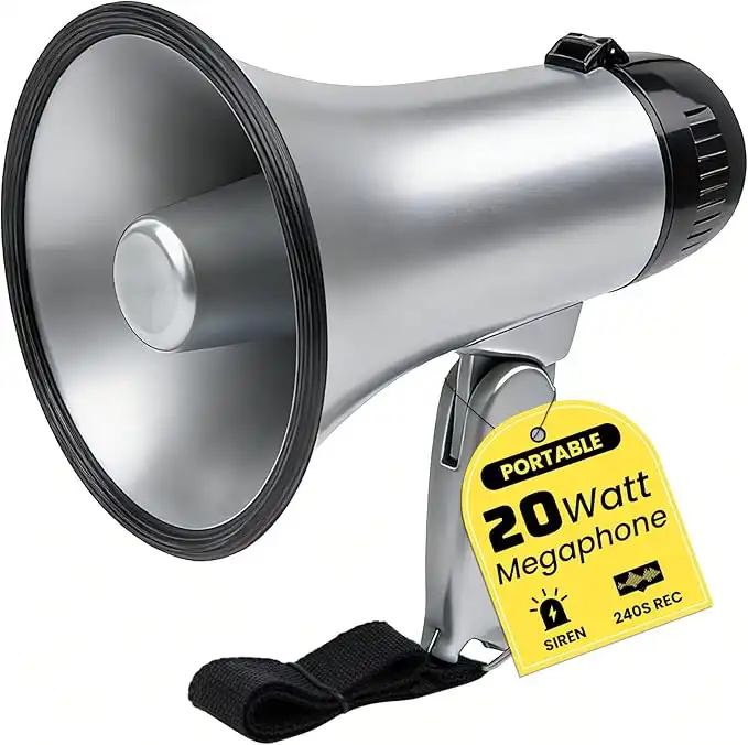 MyMealivos Portable Megaphone Bullhorn 20 Watt Power Megaphone Speaker Voice and Siren/Alarm Modes with Volume Control and Strap (Silver)… — Price History & Tracker | DeserTracker