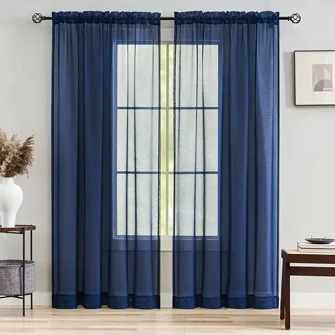 MYSTIC-HOME Sheer Curtains Navy Blue 95 Inches Long, Window Treatments Rod Pocket Drapes for Living Room, Bedroom, Semi Crinkle Voile Curtain Panels for Yard, Patio, Villa, Parlor, Set of 2, 52"x95". — Price History & Tracker | DeserTracker