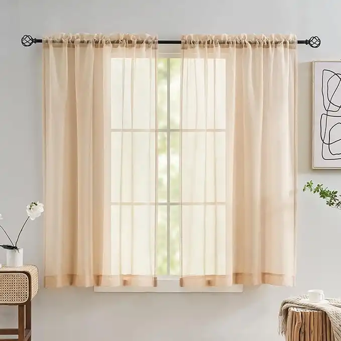 MYSTIC-HOME Sheer Curtains Taupe 63 Inch Length, Rod Pocket Voile Drapes Treatments Semi Crinkle Curtain Panels Set of 2, Taupe, 52" Wx63 L — Price History & Tracker | DeserTracker