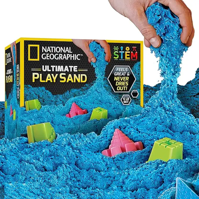 NATIONAL GEOGRAPHIC Play Sand - 6 Lbs. of Sand with Castle Molds (Blue) - A Fun Sensory Activity