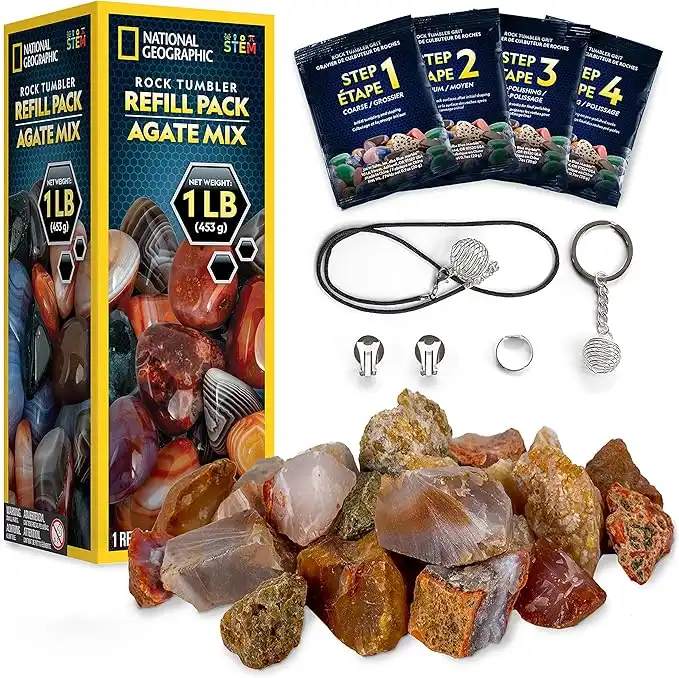NATIONAL GEOGRAPHIC Rock Tumbler Refill Kit - 1 Lb. Mix of Genuine Rough Agate for Tumbling - Supplies include Grit and Jewelry Accessories, Raw Agate — Price History & Tracker | DeserTracker
