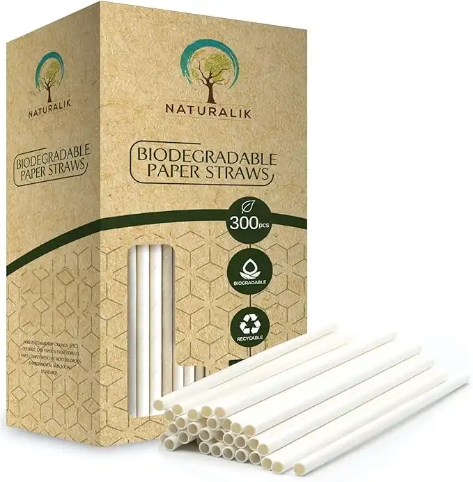 amazon.aeNaturalik 300/1000-Pack Extra Durable White Paper Straws Biodegradable- Premium Eco-Friendly Paper Straws Bulk- Drinking Straws for Juices, Restaurants and Party supplies, 7.7" (White, 300ct)