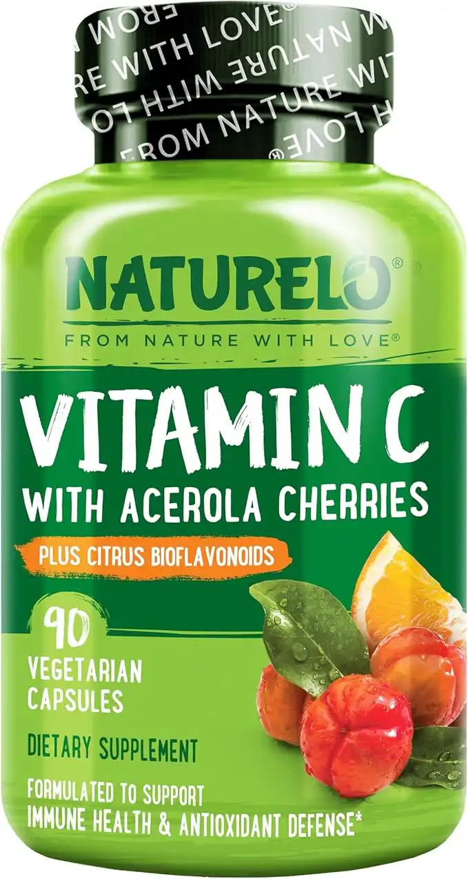 amazon.aeNATURELO Vitamin C with Organic Acerola Cherry Extract and Citrus Bioflavonoids - Vegan Supplement - Immune Support - 500 mg VIT C per Cap - Non-GMO - 90 Capsules