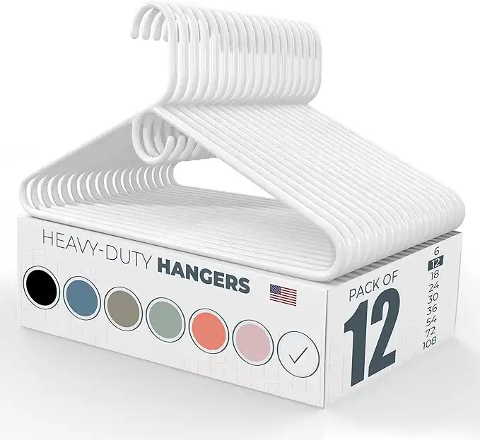 Neaties 12pk Made in USA Heavy Duty Plastic Clothes Hangers Bulk, 20 30 50 100 Pack Available, Strong Plastic Hangers, Jacket Coat Hangers, Thick Plastic Hanger for Closet and Clothing Hangars (White)