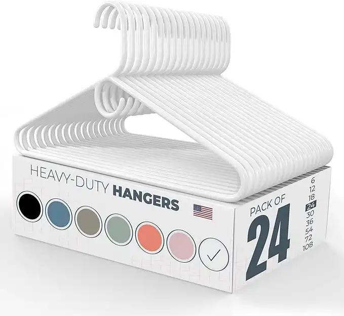 Neaties Heavy Duty Plastic Hangers Bulk Made in USA (6 to 108 Pack Available or Hangers 24 Pack) Strong Clothes Hangers Bulk | Coat Hangers Plastic, Hangers Heavy Duty, Plastic Hanger (White 24 Pack)