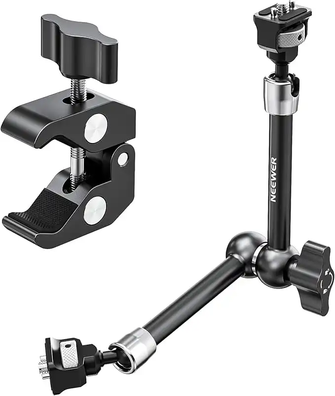 NEEWER 11" Articulating Magic Arm Clamp Mount with Super Clamp, Camera Monitor Mount with 1/4" 3/8" ARRI Locating Pins & Holes for DSLR Action Camera Video Light Compatible with SmallRig Cage, ST16C