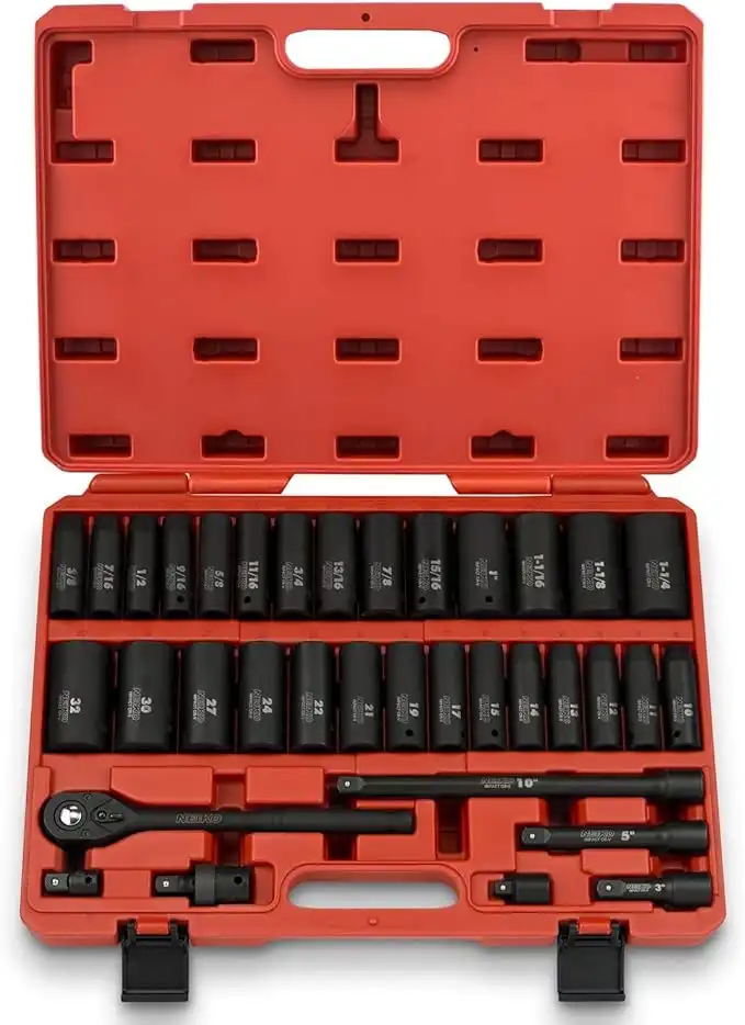 amazon.aeNeiko 02446A 1/2" Drive Master Impact Socket Set, 35 Piece Deep Socket Assortment | Standard Sae (Inch) And Metric Sizes | Includes Ratchet Handle And Extension Bars | Cr-V Steel
