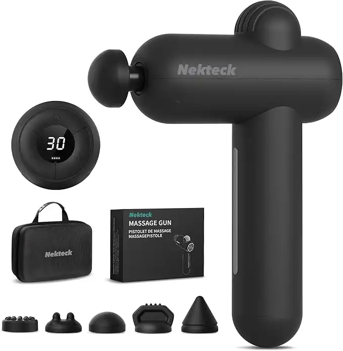 Nekteck Massage Gun Deep Tissue, 12mm Amplitude, 30 Speeds, 5 Attachments for Full Body Muscle Relaxation, Pain Relief, USB-C Rechargeable Body Massager, Quiet & Portable, Ideal for Home Office Use