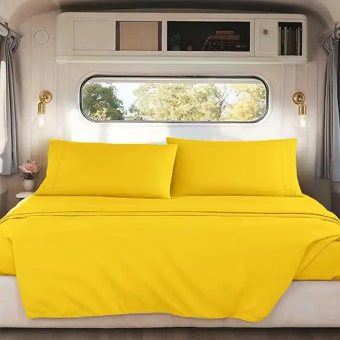 Nestl Bedding Short Queen Bedsheet, RV Sheets Set for Campers, Deep Pockets Fitted RV Bunk Sheets, 4-Piece 1800 Microfiber Bed Sheet Set, Cool & Breathable, RV Queen Sheets, Yellow — Price History & Tracker | DeserTracker