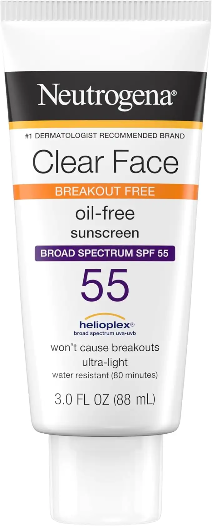 Neutrogena Clear Face Sunscreen Lotion for Acne-Prone Skin, Broad Spectrum SPF 55 Facial Sunscreen for Oily Skin, Oil-, Fragrance- & Oxybenzone-Free Water Resistant Sunscreen, 3 fl. oz — Price History & Tracker | DeserTracker