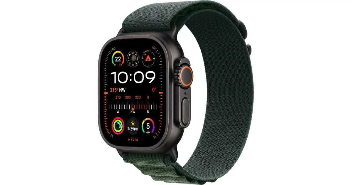 noon.comWatch Ultra 2 (2024) GPS + Cellular 49mm Black Titanium Case With Dark Green Alpine Loop - Medium