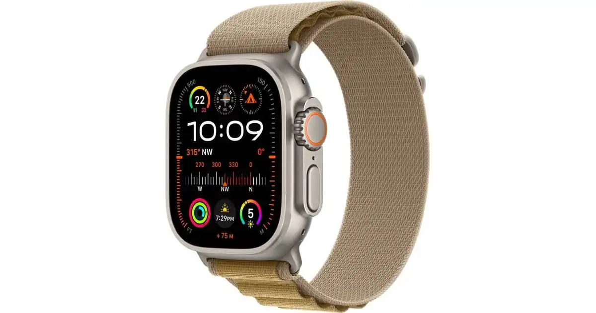amazon.aeApple Watch Ultra 2 GPS + Cellular 49mm Smartwatch, Sports Watch with Natural Rugged Titanium Case with Tan Alpine Loop - S. Fitness Tracker, Precision GPS, Extra-Long Battery Life,Carbon Neutral