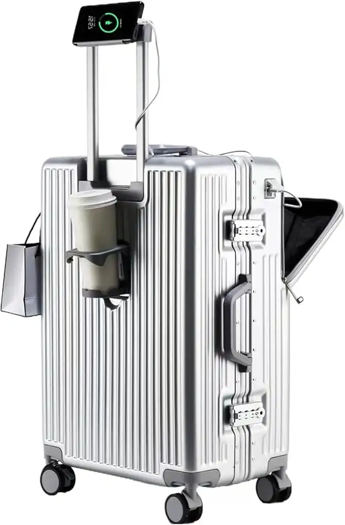 New Travel ABS Luggage Set, Hard Travel Trolly Bag with Carry On Cabin Size,USB charge port, Combination Lock and 4 Spinner Wheels, 20 Inches (silvery, 20 inch)