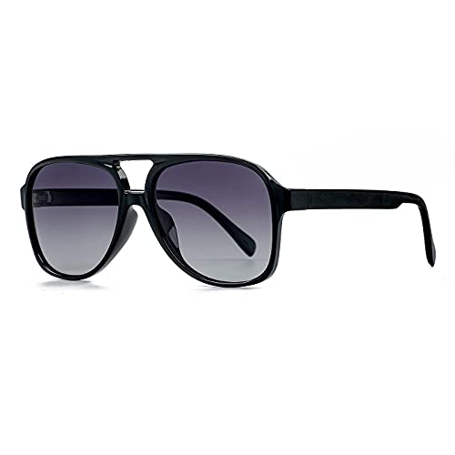 NIDOVIX Polarized Classic Vintage Aviator Sunglasses for Men Women Large Frame Retro 70s Sunglasses, A2 Black/Gradient Grey, lenswidth