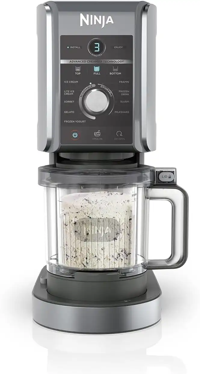 Ninja CREAMi Deluxe Ice Cream Maker & Frozen Dessert Maker with 3 Tubs 10 Functions Makes Ice Cream Gelato Sorbet Frozen Yoghurt Milkshakes Slushi & More 2-in-1 Flavour Option Silver NC501UK