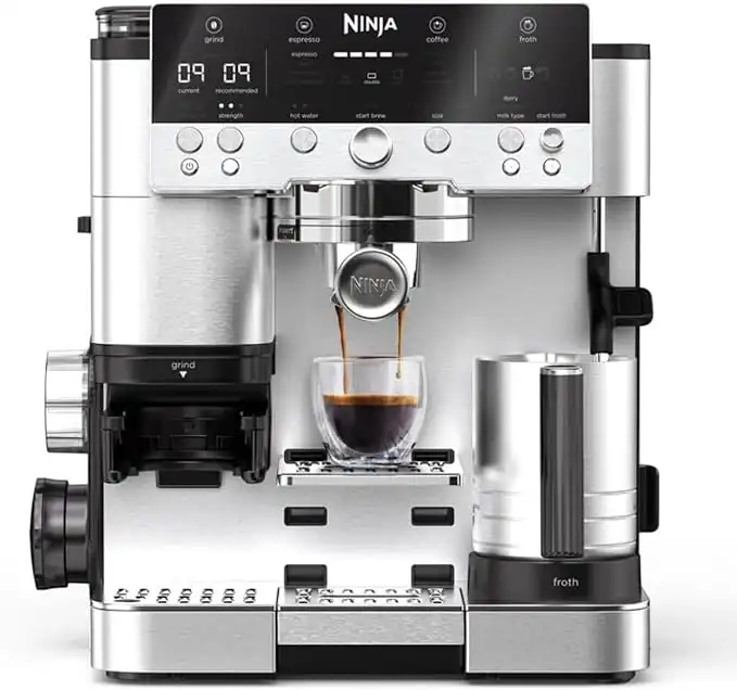 Ninja Luxe Premier ES601EU 3-in-1 Coffee Maker with Grinder and Frother for Latte, Cappuccino, Cold Brew & Espresso, Easy to Use, 4 Presets for Frothing, Silver